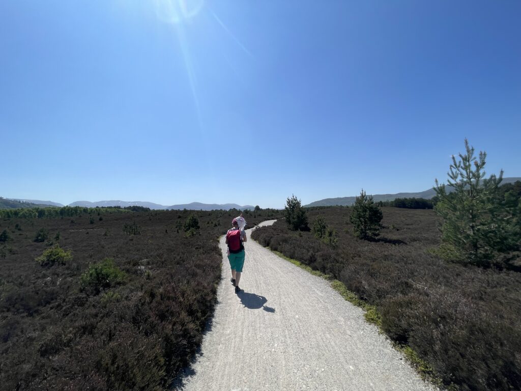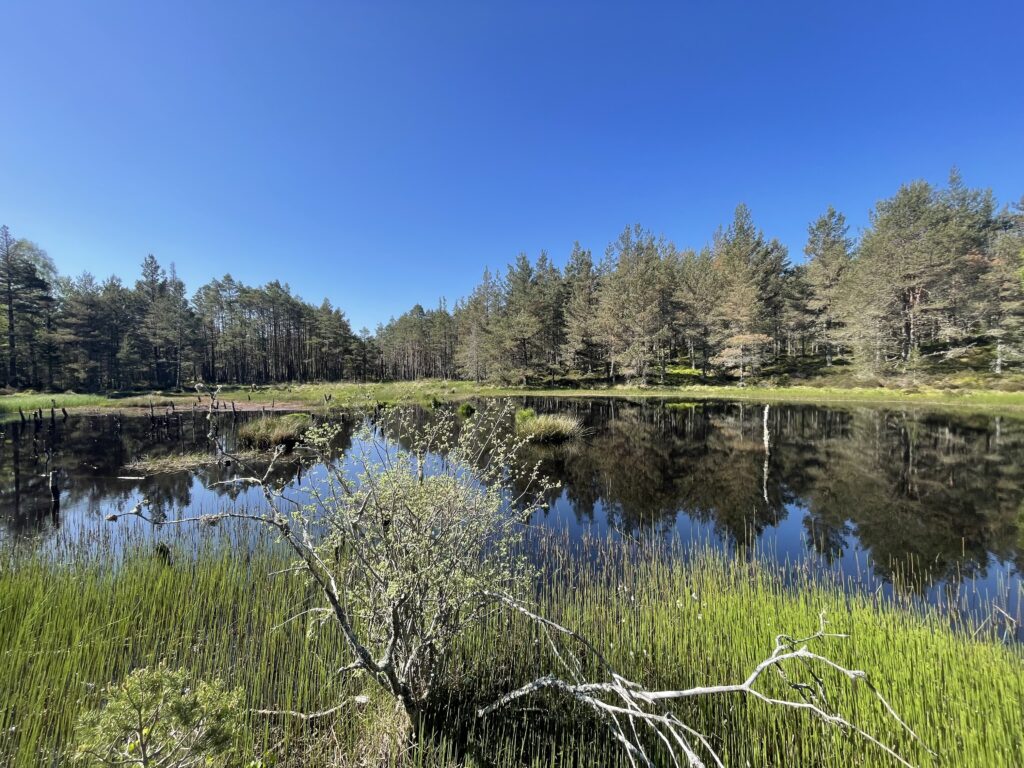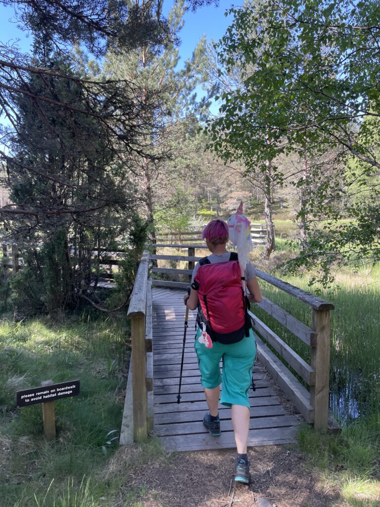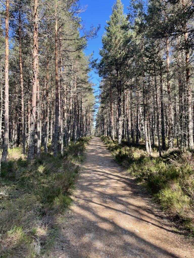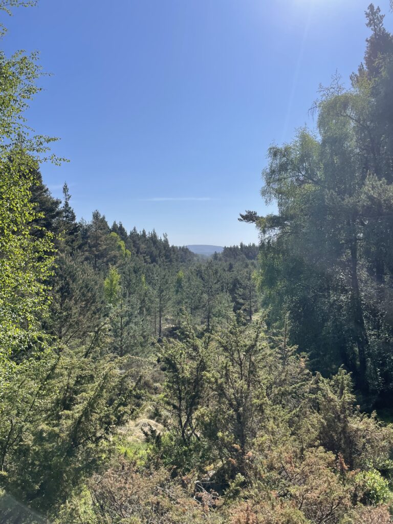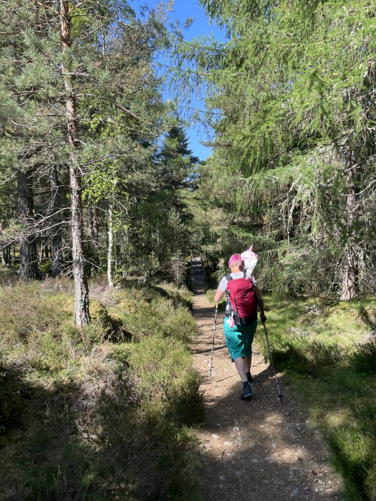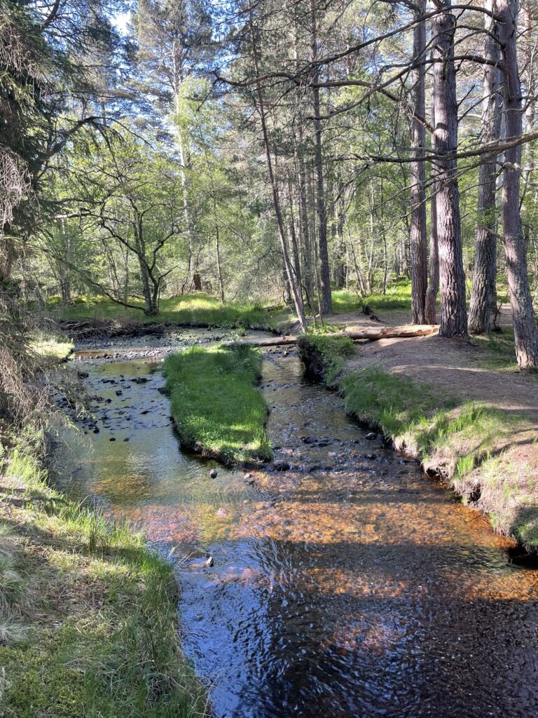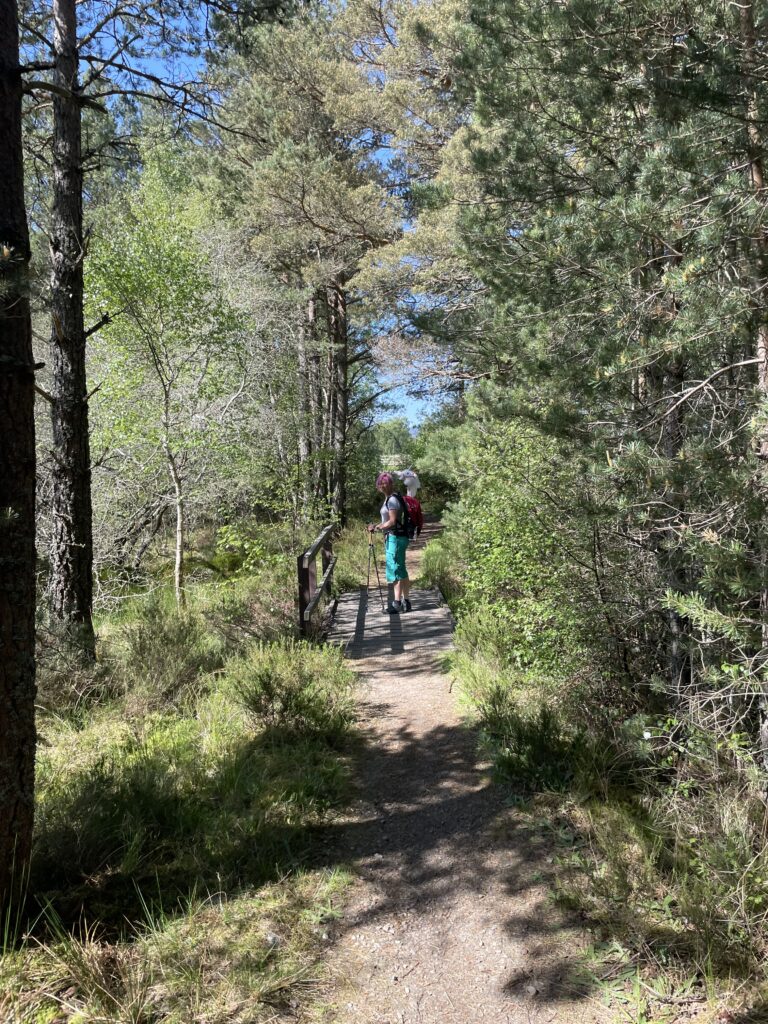 Am Morgen durch einen ursprünglichen schottischen Wald gewandert bis Boat-of-Garten