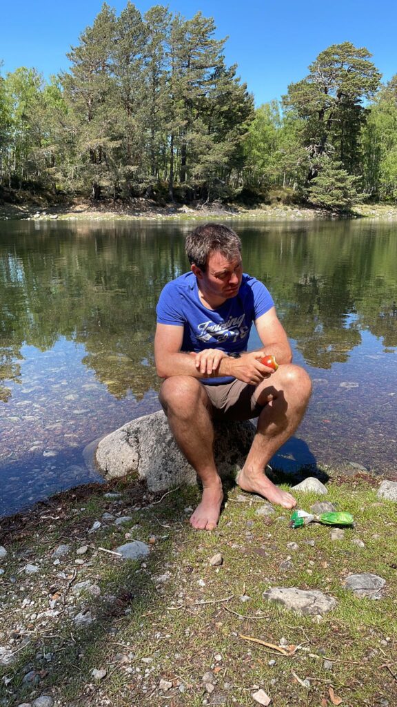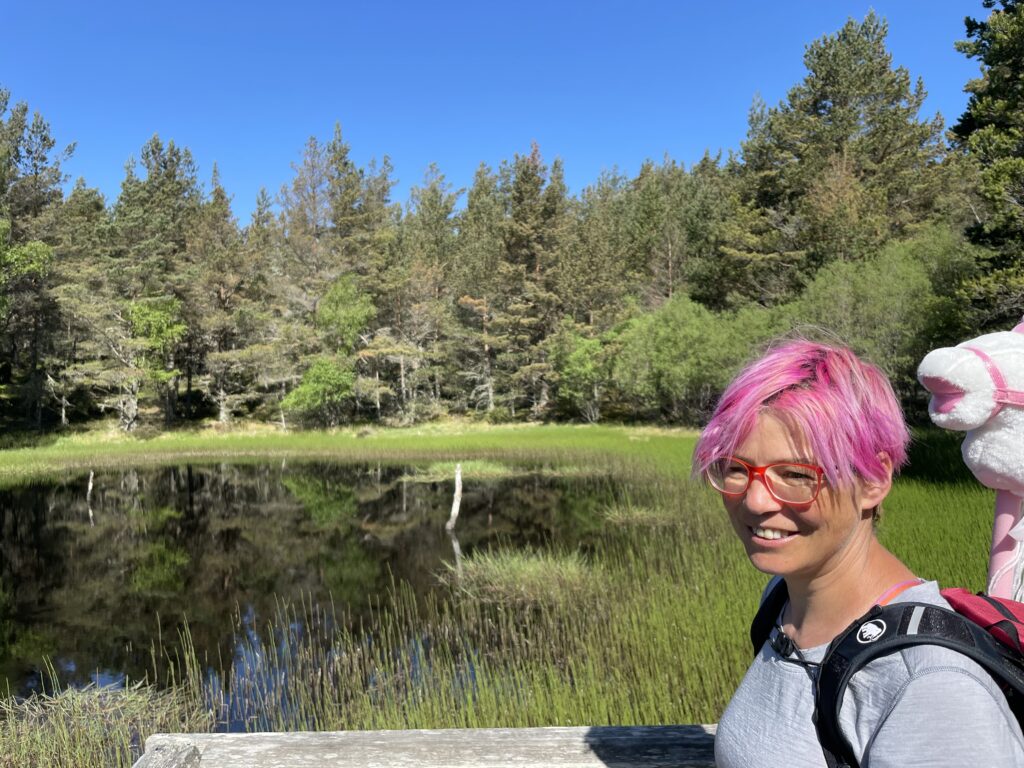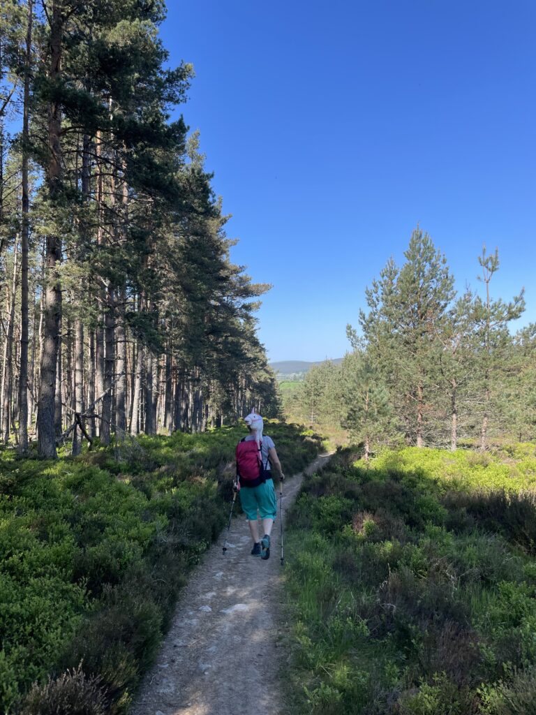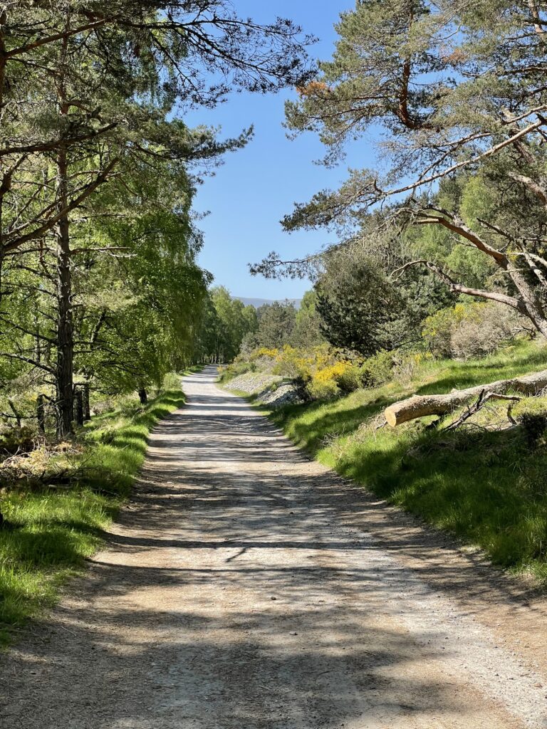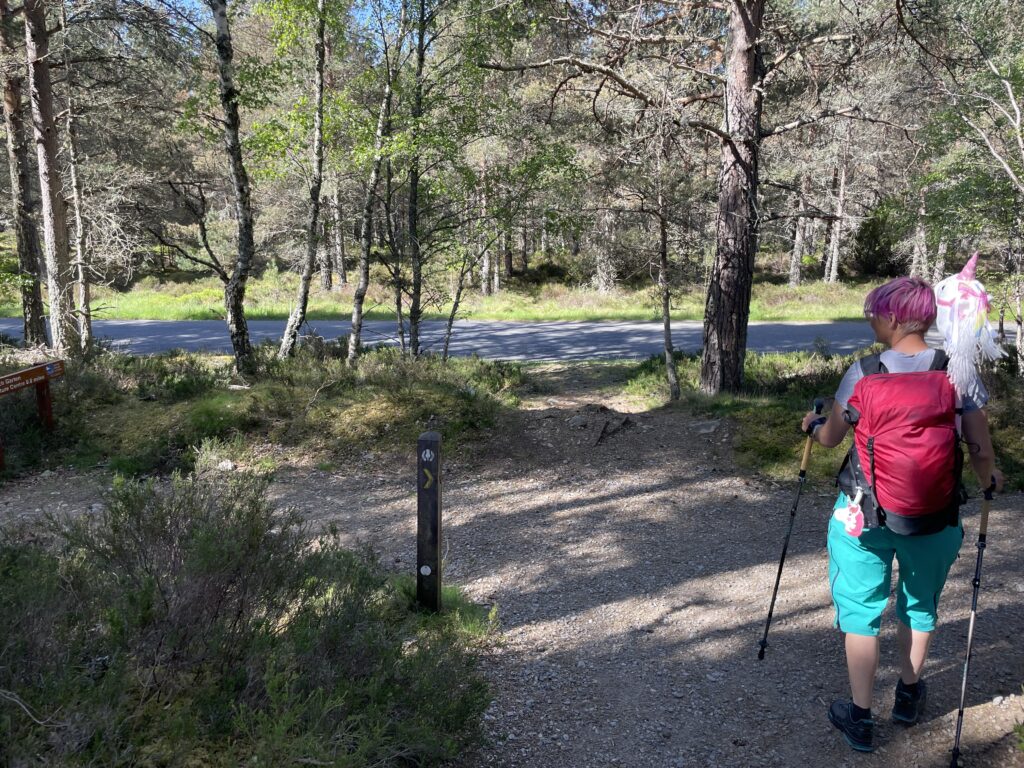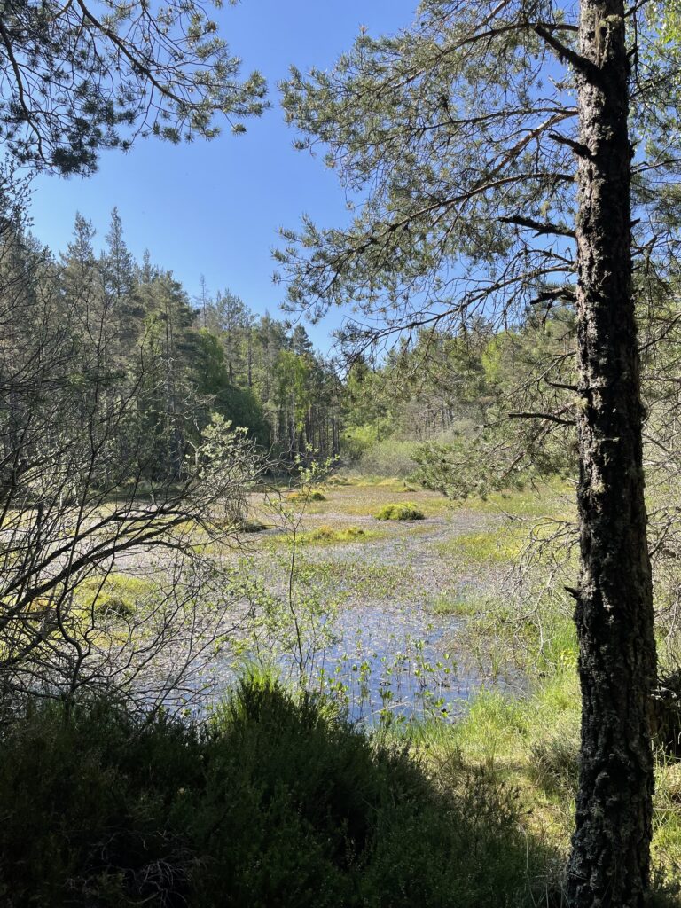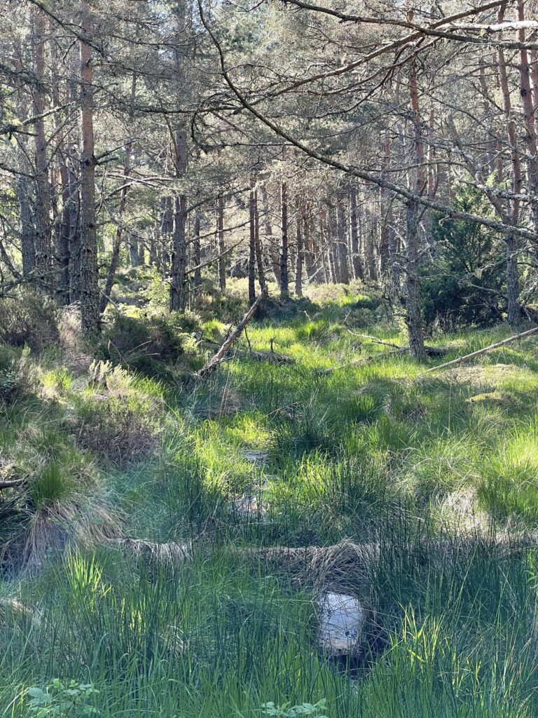 Am Morgen durch einen ursprünglichen schottischen Wald gewandert bis Boat-of-Garten