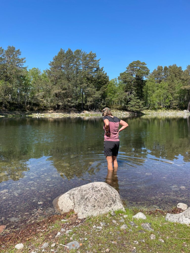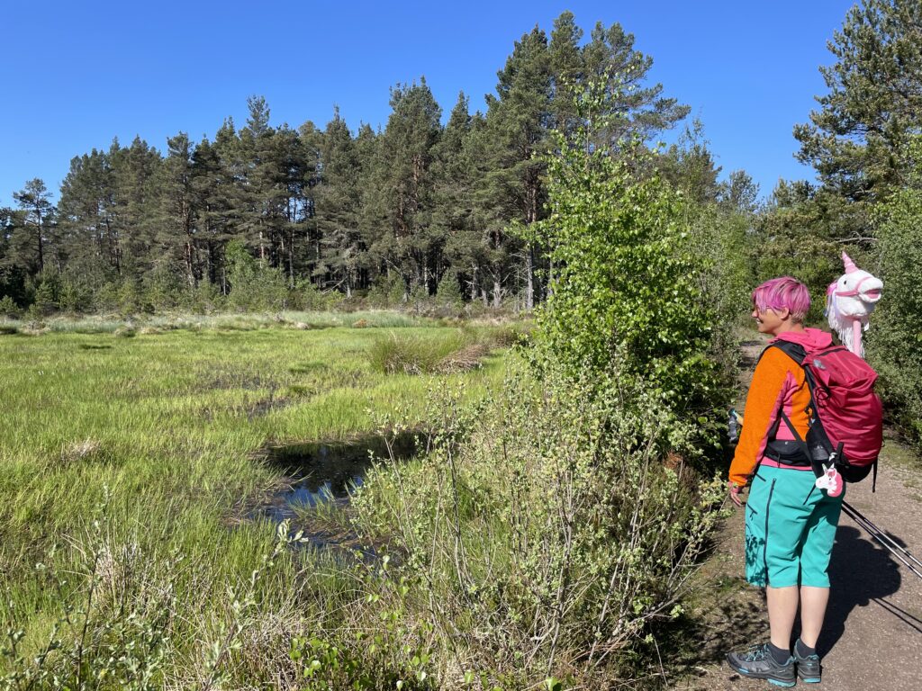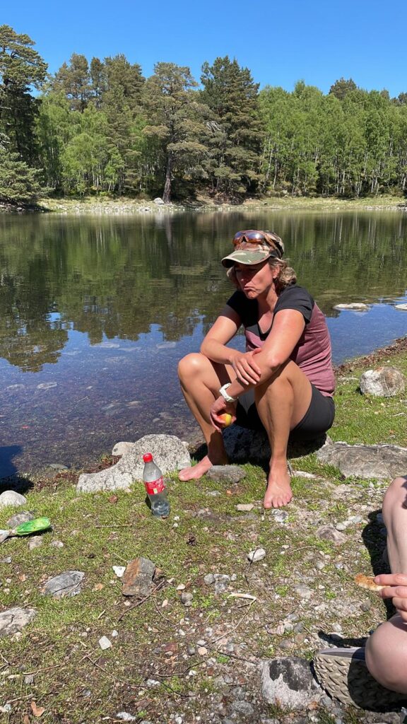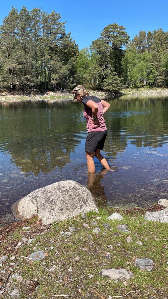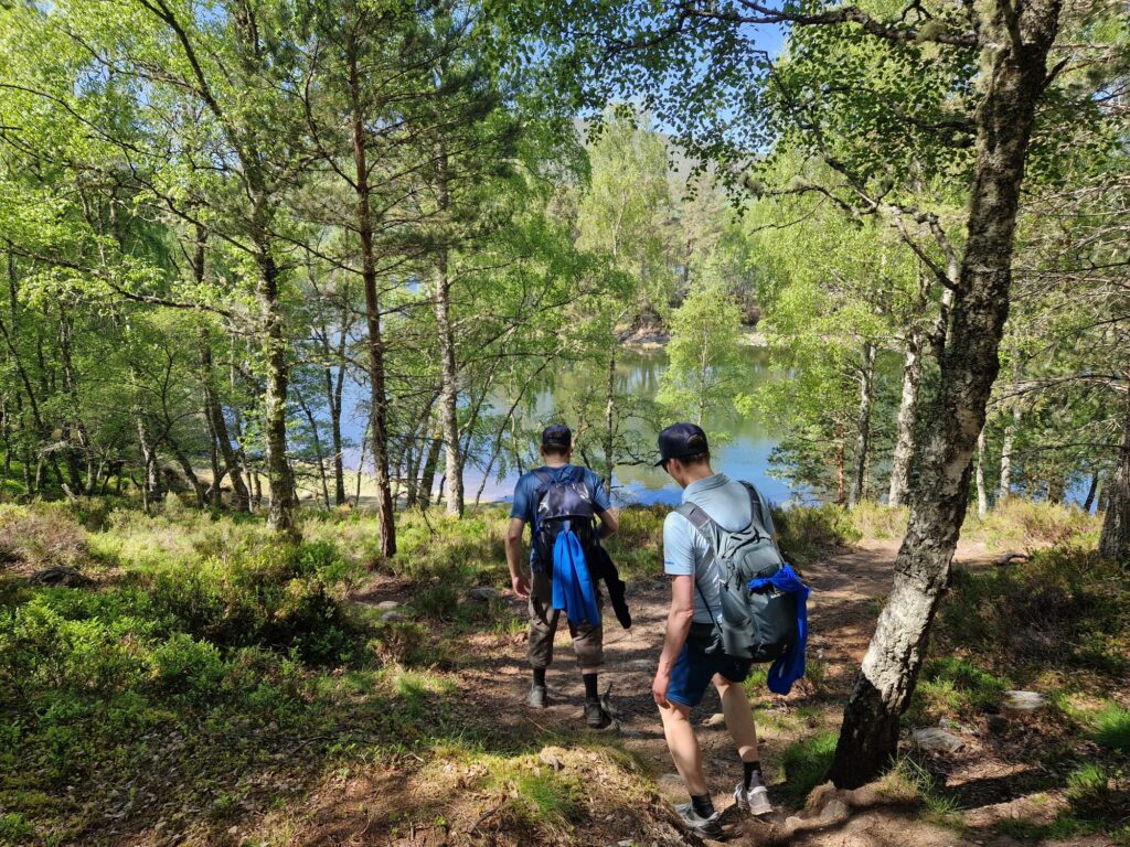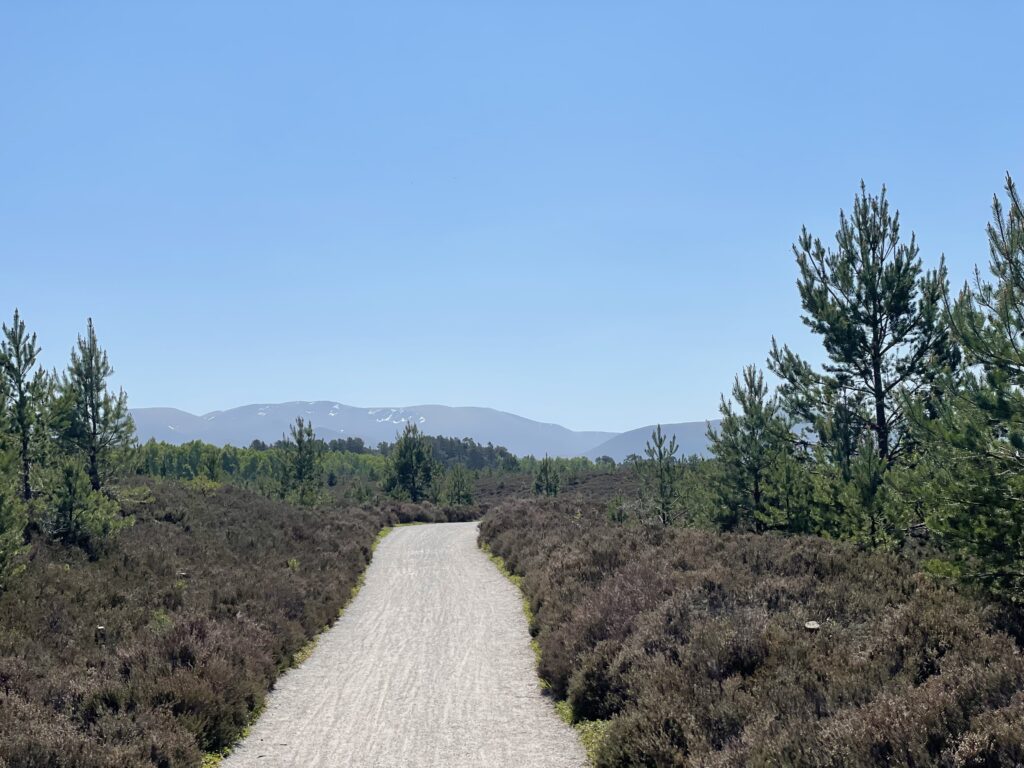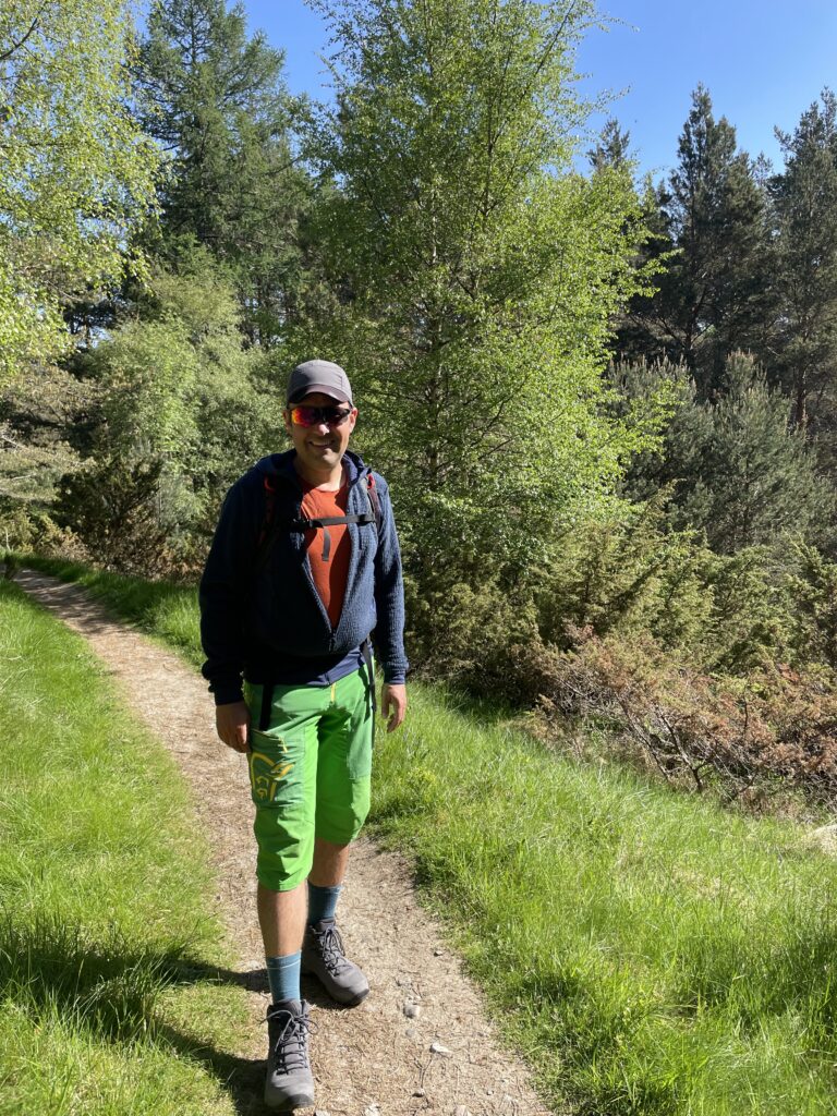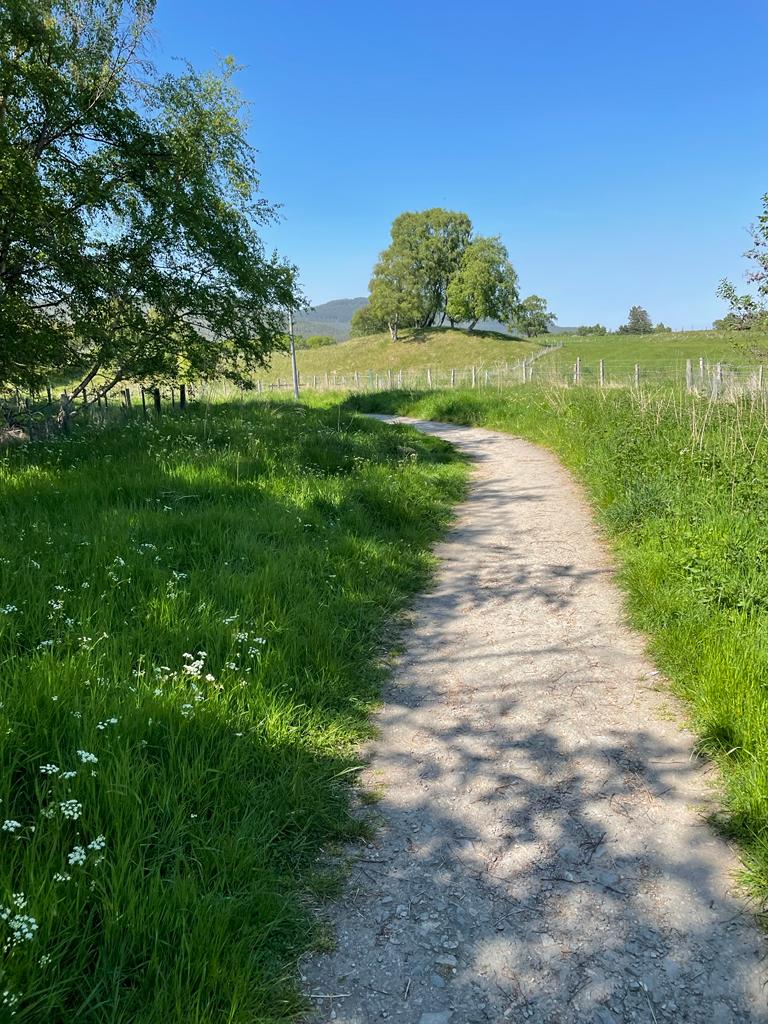Am Morgen durch einen ursprünglichen schottischen Wald gewandert bis Boat-of-Garten