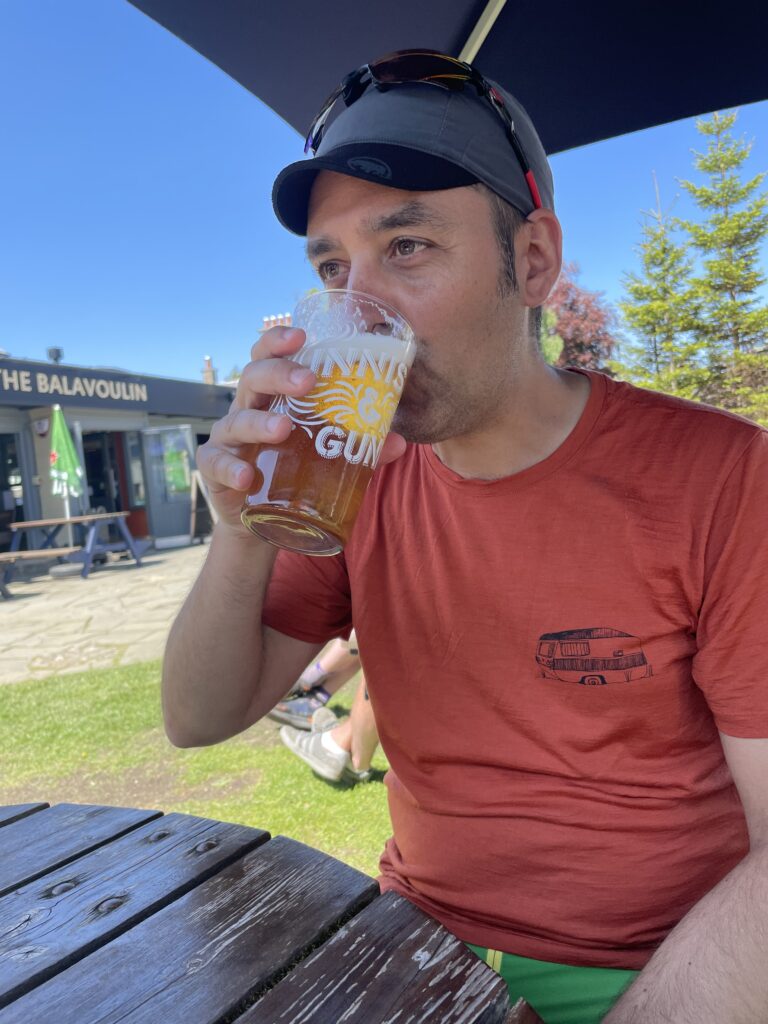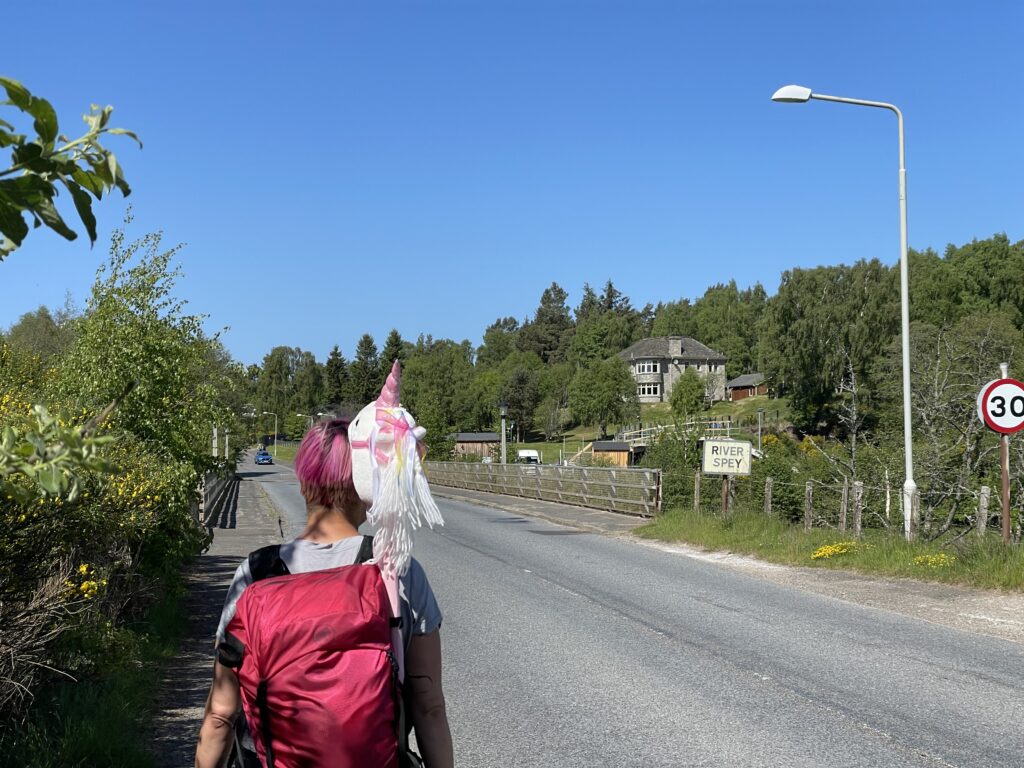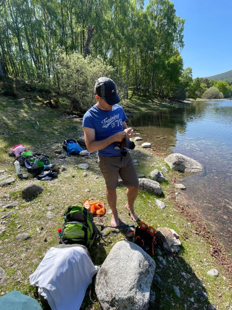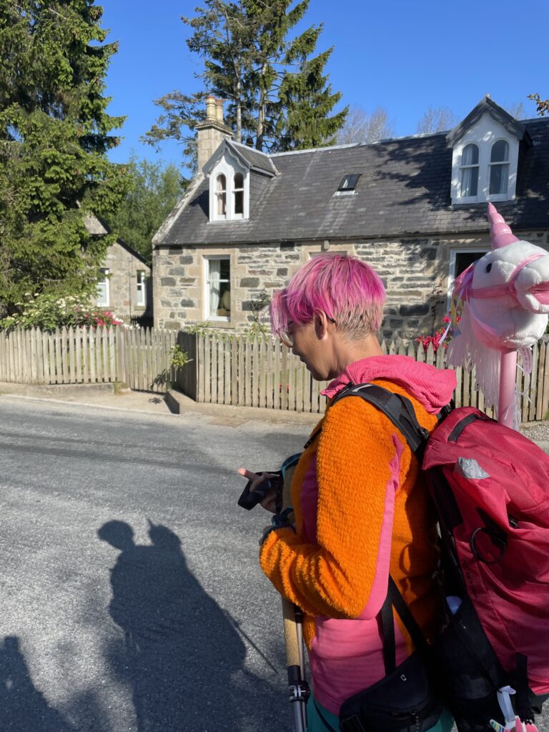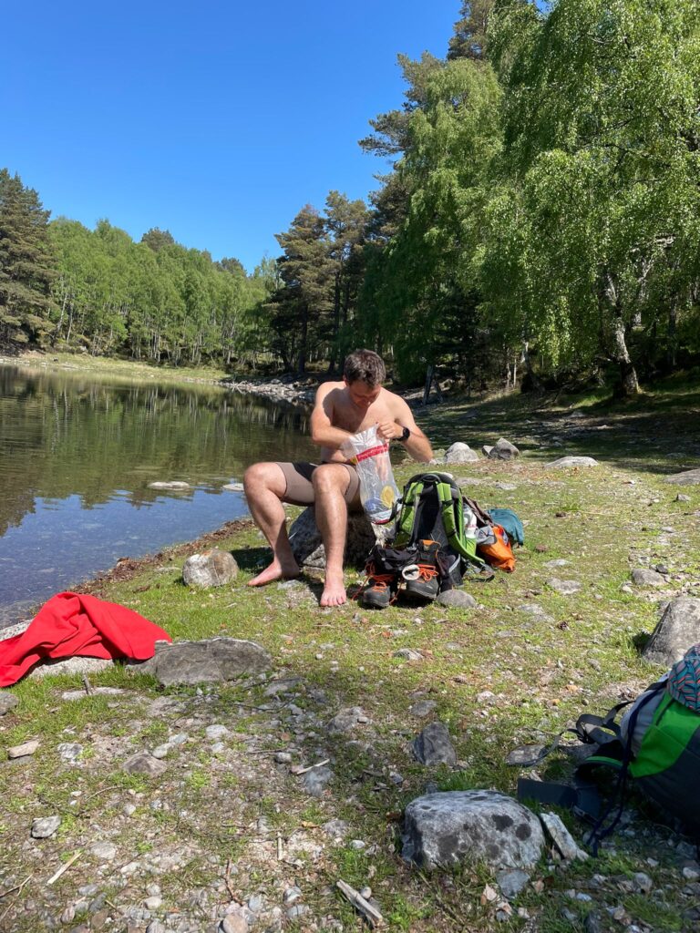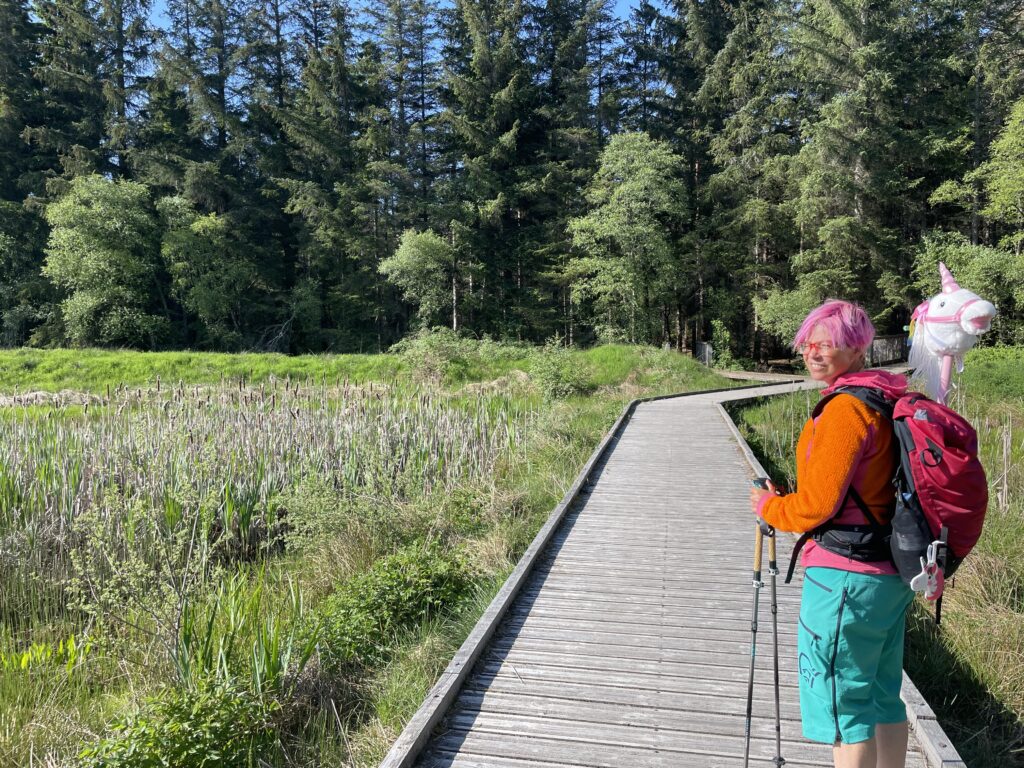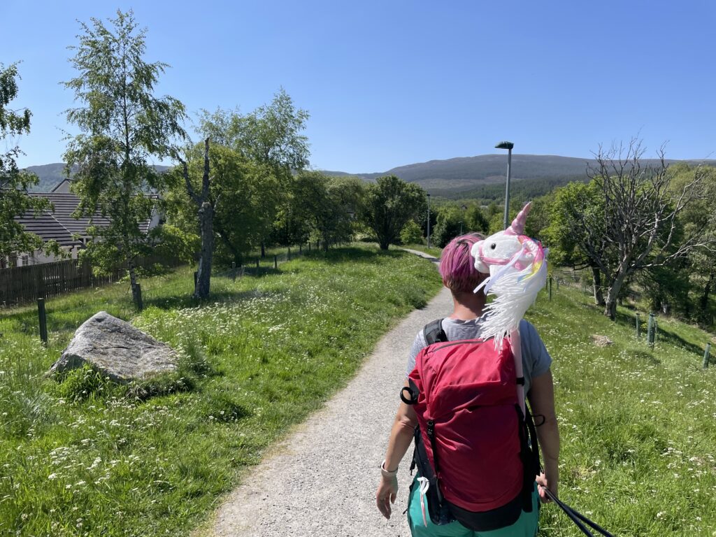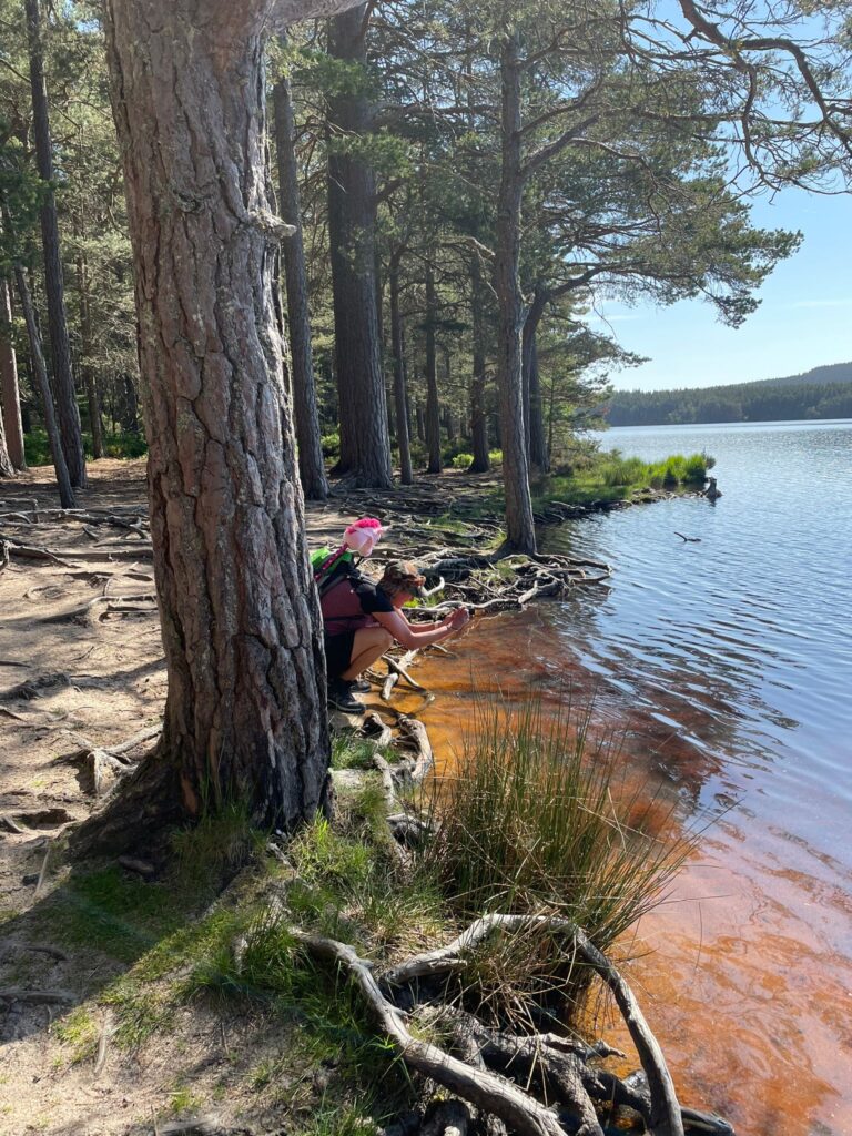 Am Morgen durch einen ursprünglichen schottischen Wald gewandert bis Boat-of-Garten