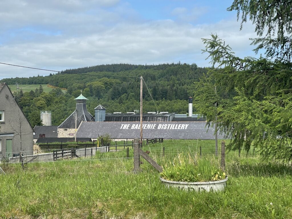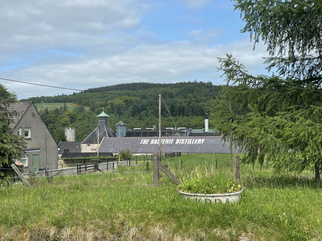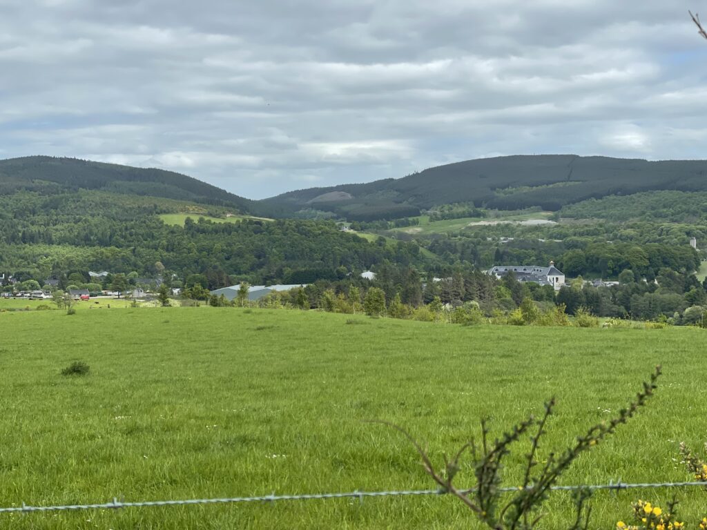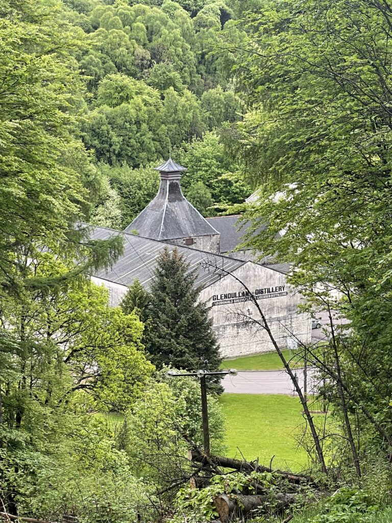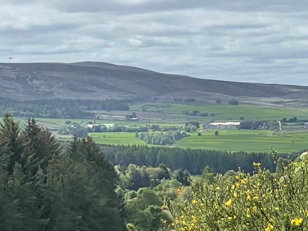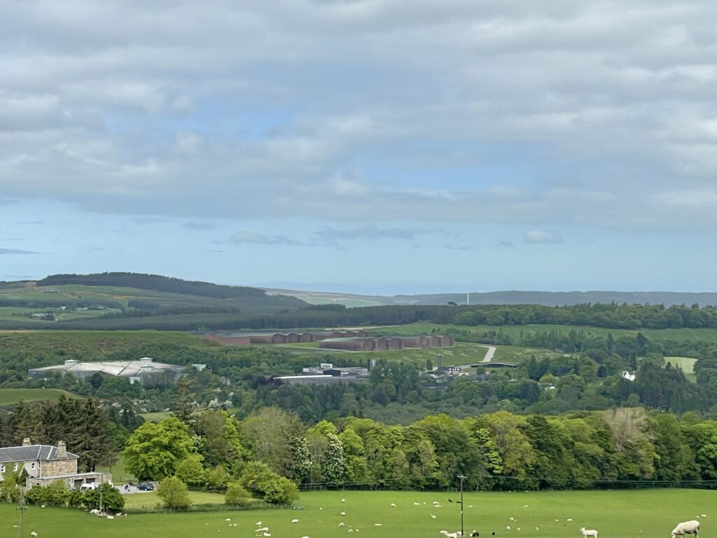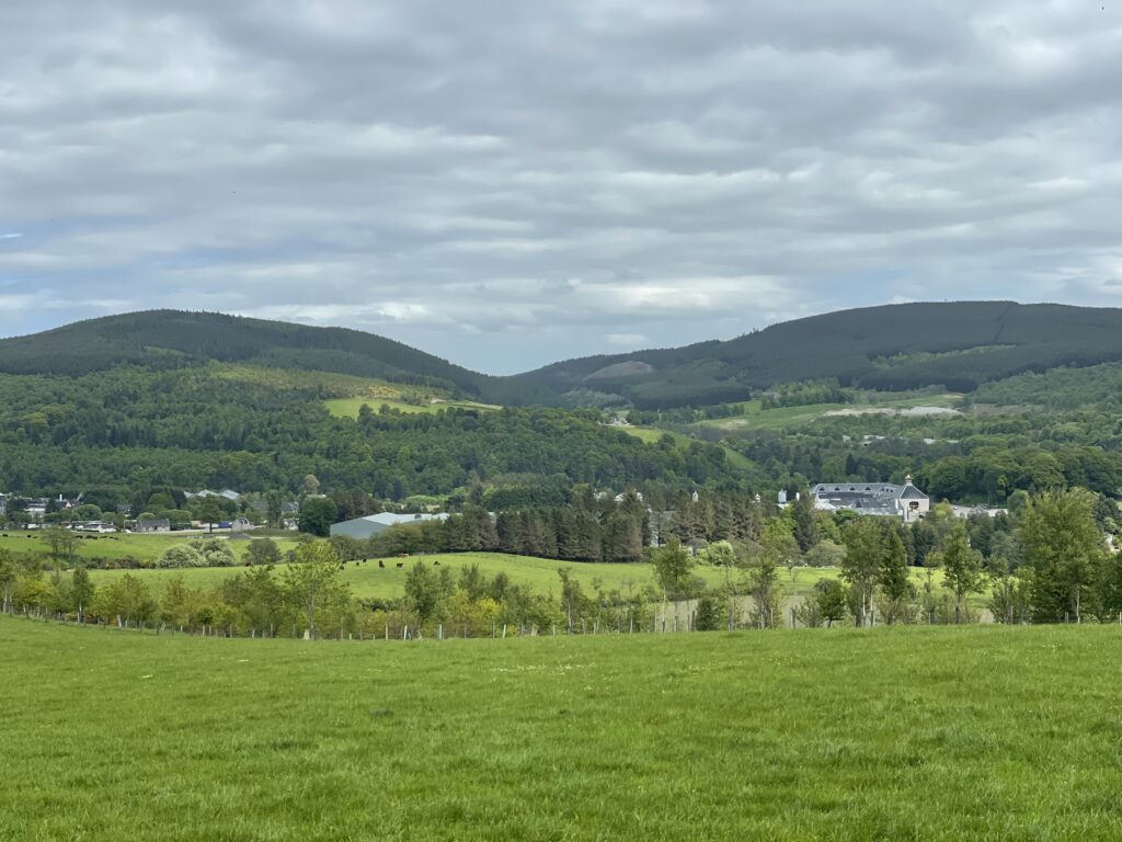 Weiter geht es über einen Hügel nach Dufftown. Dabei Aussicht auf Macallan und Glenallachie.