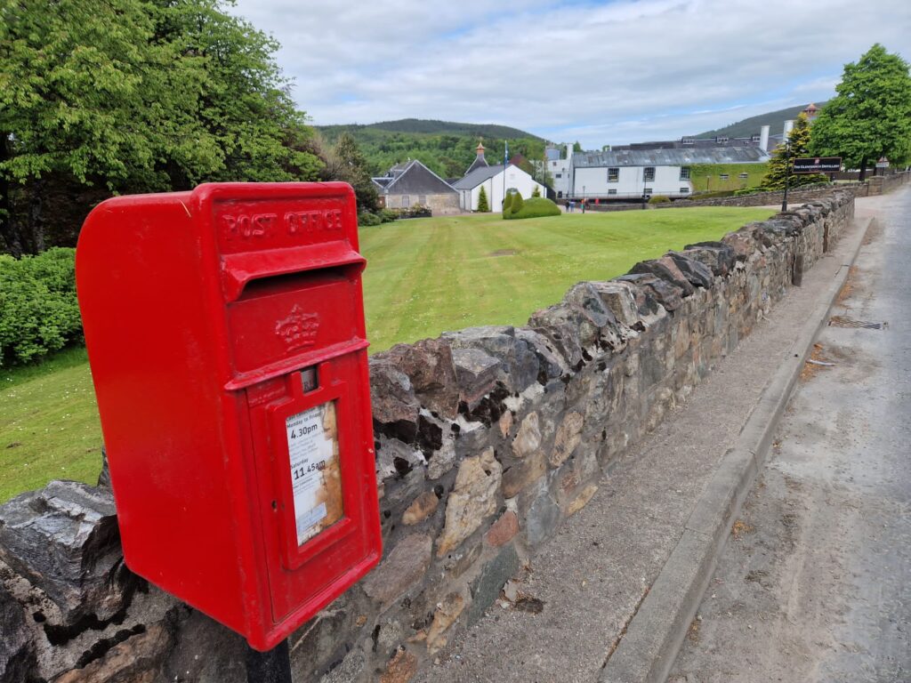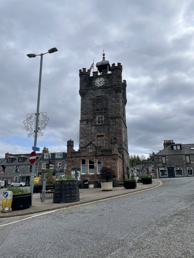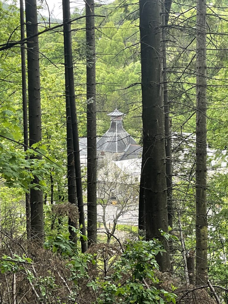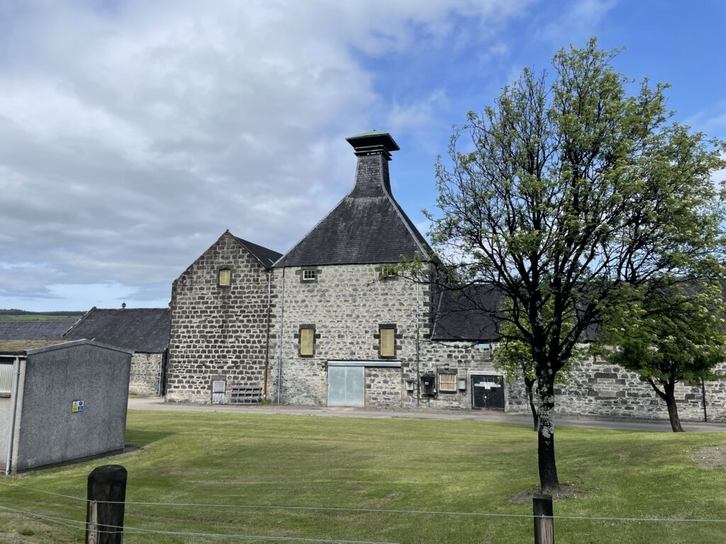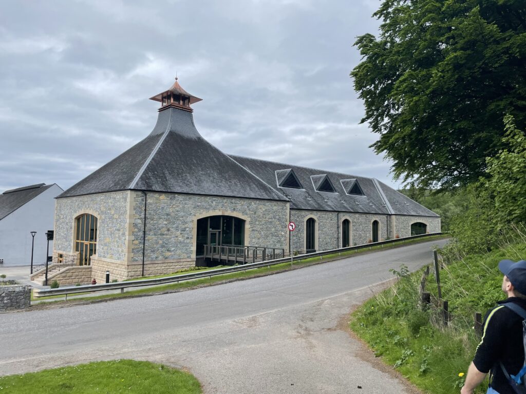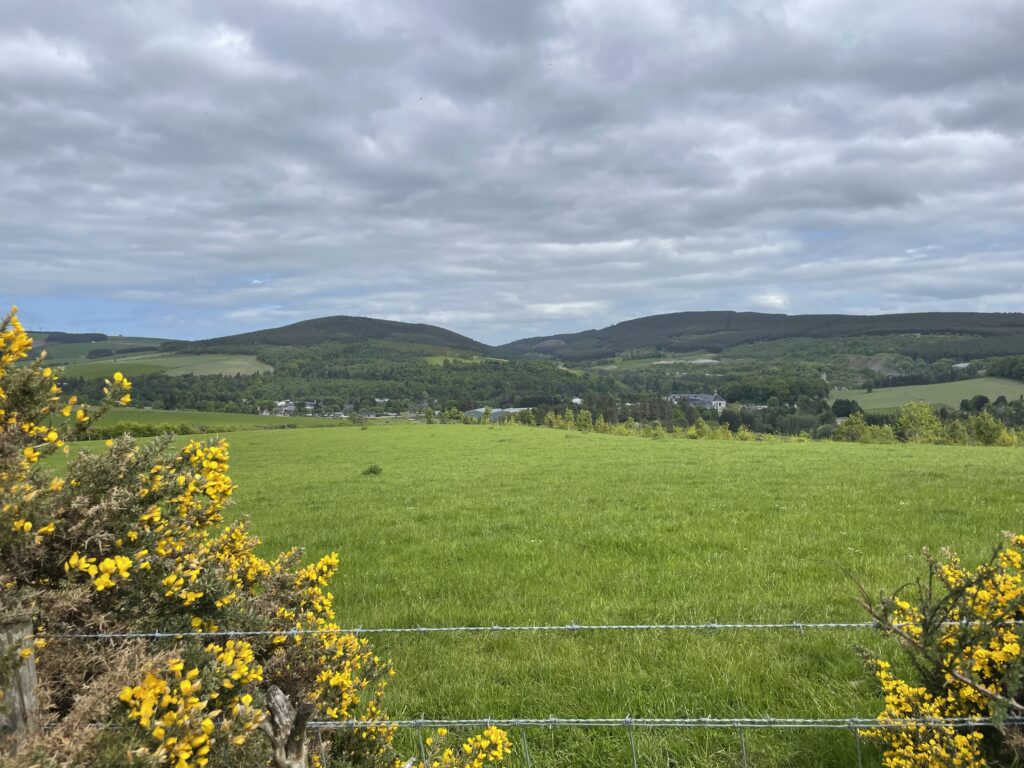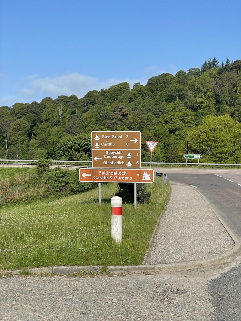 Weiter geht es über einen Hügel nach Dufftown. Dabei Aussicht auf Macallan und Glenallachie.