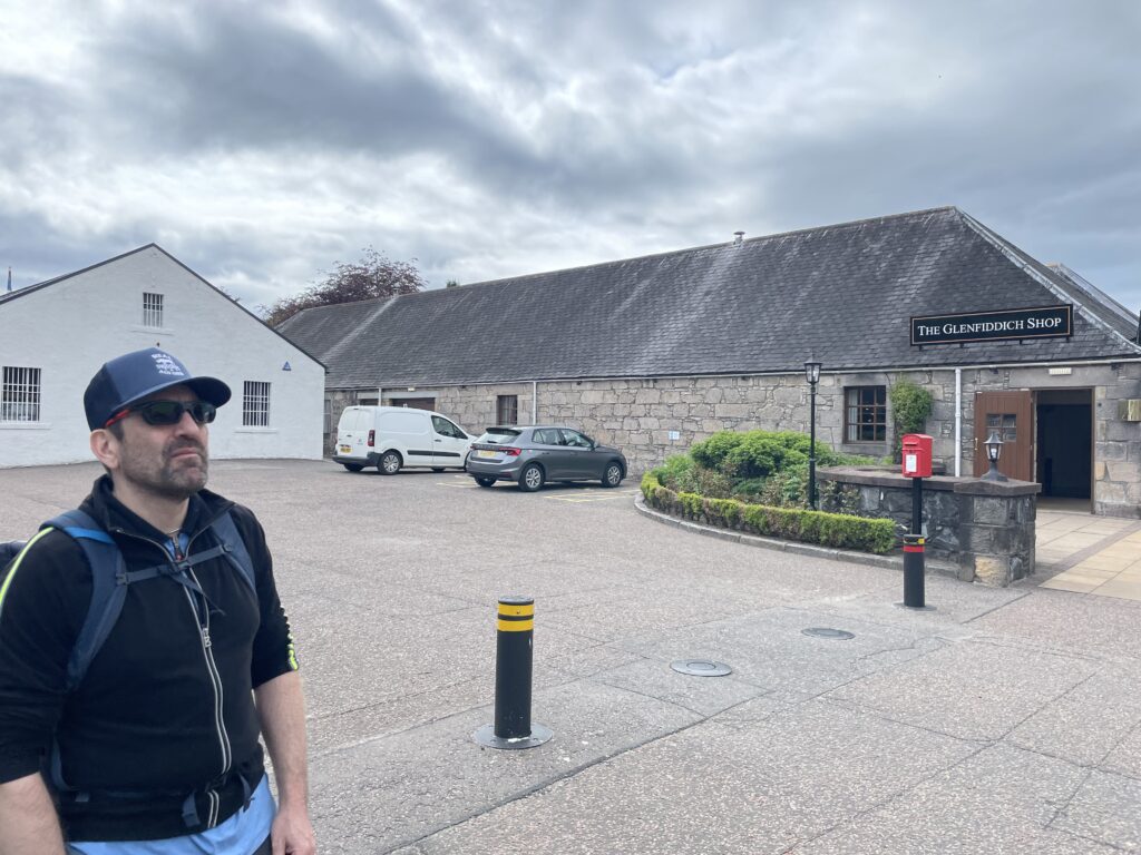 Vor Dufftown erste Blicke auf Glenfiddich und eine kleine Pause