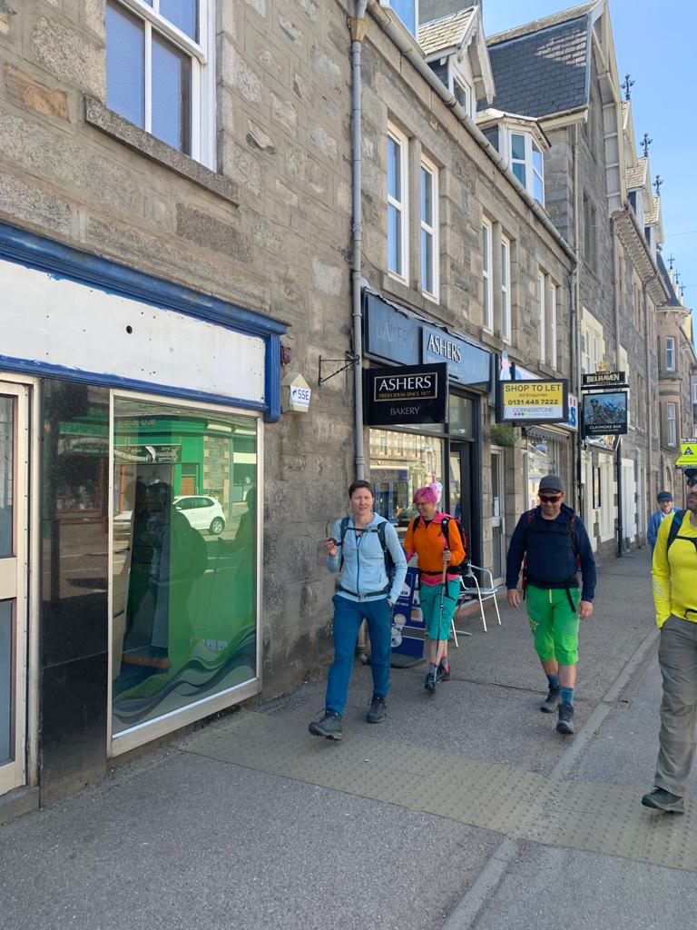 Eine kurze Etappe, darum gemütlicher Start mit Shopping und Café in Grantown